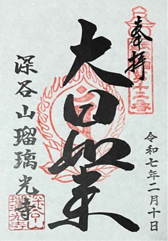 深谷七福神・大黒天 武蔵国十三仏・第12番札所(大日如来) 鐘銘 當山の古鐘は大東亜戦争の為供出す 戦後第六十一世考照師代 県佛教会を経て残存の梵鐘を求め現在に至った 奇しくも同宗の千葉県安房郡安楽寺銘の故を以て 同寺に返還し 比叡山開 創千二百年を慶讃 新たに鋳造するに当り その緑由を後世に伝う 願わくは鐘声久遠にひびき 正法興隆院内安穏檀信徒家門繁栄に加護あらんことを 昭和六十四年一月吉日 |