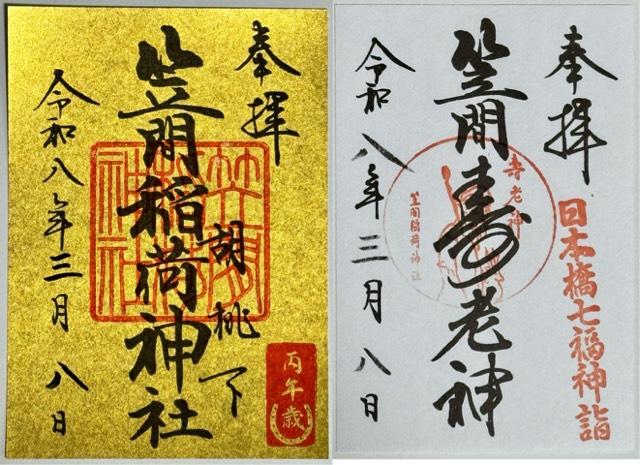 書き置きの御朱印を拝受しました。日本橋七福神巡りの寿老神をお祀りしています。
