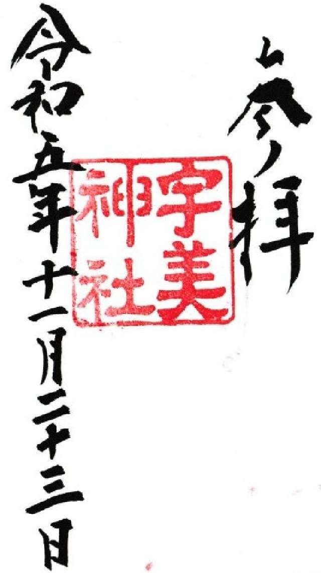 社号「宇美」の起因は、祭神 布都御魂神が出雲国にご来臨の際、海上より御上陸になったところからこの社号ありと伝えられ