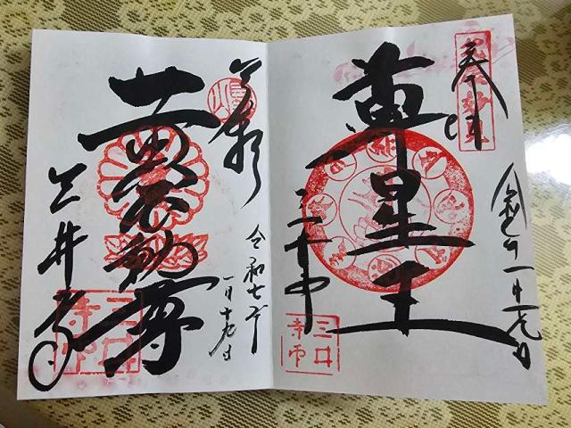 長等山 園城寺 (三井寺) おんじょうじ(みいでら)の御朱印「三井晚鐘」、「黃不動尊」、「尊星王」と限定の御朱印「普賢菩薩」を直書きで御朱印をいただきました。