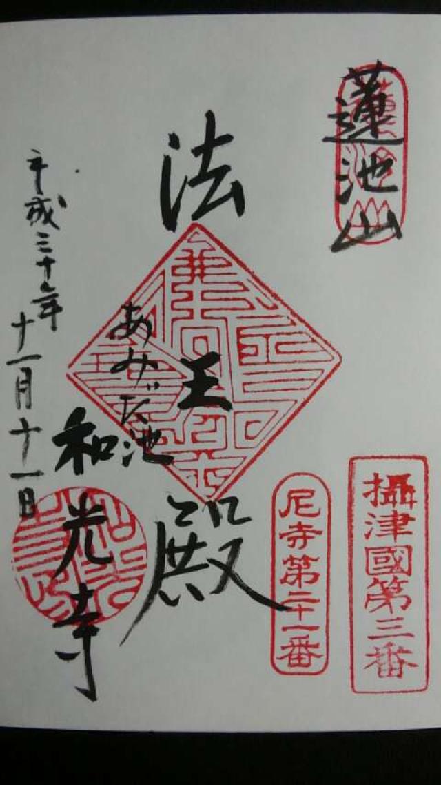 この地にある阿弥陀池は、後に信濃国善光寺の本尊となる阿弥陀如来像が捨てられ、また引き上げられた場所として有名であり、江戸時代の初期には念仏修行者の精舎が建てられていた。そこに、元禄11年(1698年)堀江新地の開発に合わせて智善上人が善光寺の本尊が出現した霊地として新たに寺院を建立、開山である智善から院号をとって蓮池山智善院和光寺と称した。 |