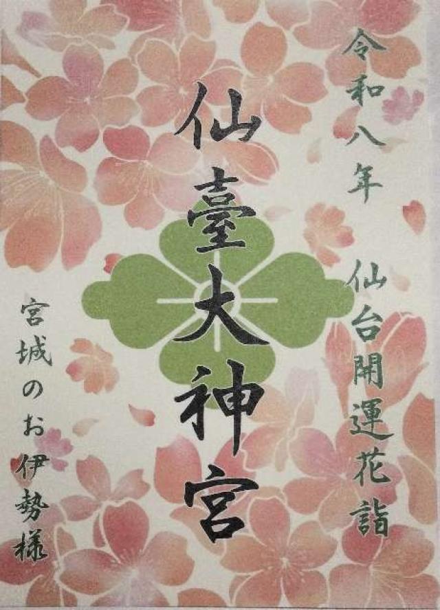昭和21年終戦を迎え米国占領軍の所神道指令に依り宮城本部の解散と名称の変更を余儀なくされ同年4月16日宗教法人令に基づき宗教法人仙台大神宮を設立し連綿として伊勢の、神々を御祭神と奉じ幾多の変遷を重ねつつ宮城のお伊勢様として宏大無辺の御神徳、尊崇を集め御光を仰ぎ、地鎮祭、竣工祭等、諸祭典執行の由緒深き神宮として現在に至。 |