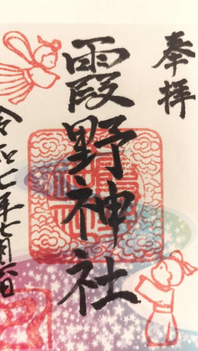 明治四十三年十月五日埼玉県指令により旧入間郡高萩村大字女影字諏訪山四四四番地鎮座諏訪神社同四四三番琴平神社同字宿西八幡神社三柱神社八雲神社同字小河原天神社稲荷神社同字北竹ノ内八一五番地白髭神社同字山神社同村大字中沢柳久保二二一番地白髭神社同字宿方愛宕神社同西腰金山神社同字森ノ腰白山神社同山下滝神社の各社をもって明治四十三年十月十七日大字女影字諏訪山四四四諏訪神社に合祀社號をを霞野神社と改称した