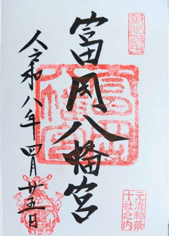 | 御祭神 | 主祭神 応神天皇 相殿神 神功皇后、仁徳天皇、天照皇大神、常磐社神、武内宿祢命、日本武尊、天児屋根命、竈大神 |