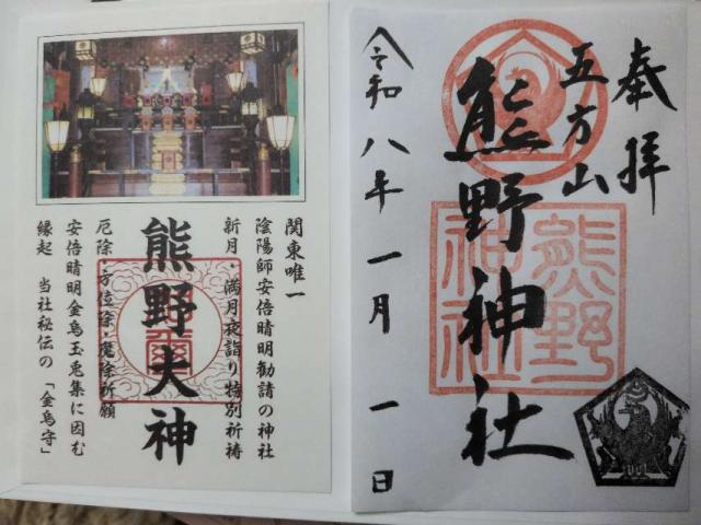 | 由来 | 長保年間 今から千余年前に 陰陽師安倍晴明により 陰陽五行説に基づき 三十間五角の境内に 古代の石剣を御神体として 紀州熊野の神を勧請し祀られた。東京における唯一の安倍晴明縁りの神社として知られる。 |