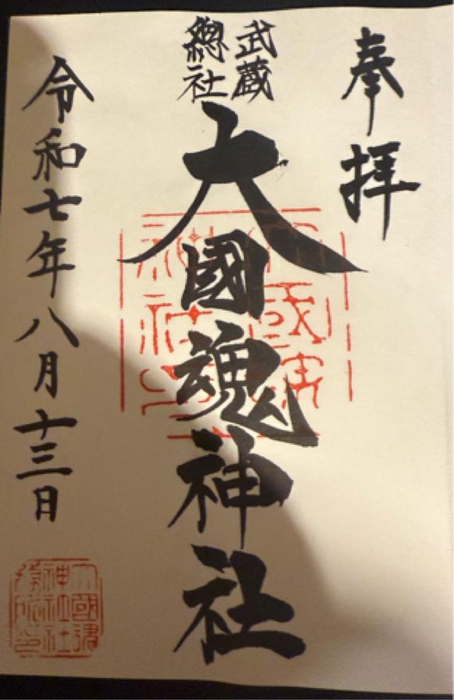 | 御祭神 | 【中殿】 大國魂大神(おおくにたまのおおかみ) 御霊大神(ごりょうのおおかみ) 国内諸神 【東殿】(向かって左) 一ノ宮 小野大神(おののおおかみ) 二ノ宮 小河大神(おがわのおおかみ) 三ノ宮 氷川大神(ひかわのおおかみ) 【西殿】(向かって右) 四ノ宮 秩父大神(ちちぶのおおかみ) 五ノ宮 金佐奈大神(かなさなのおおかみ) 六ノ宮 杉山大神(すぎやまのおおかみ) |