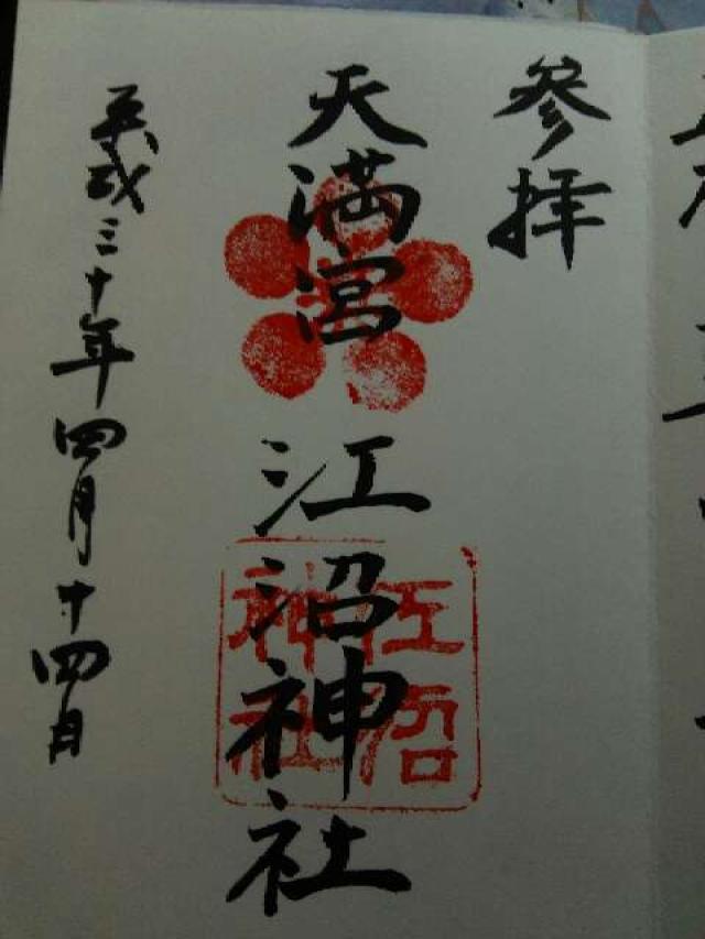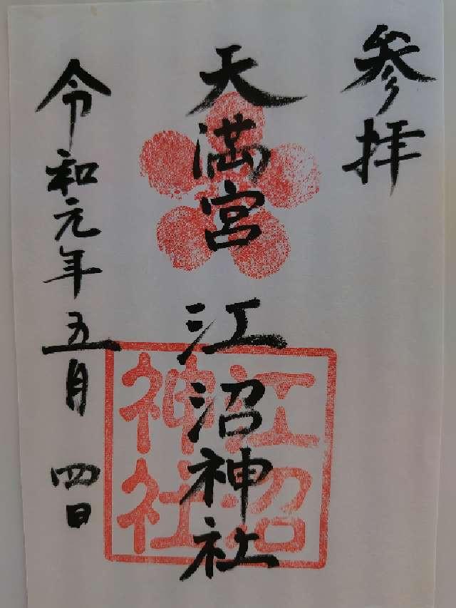初め宝永元年(1704)4月三代前田利直邸内に菅原道真の霊を祀り天満天神社と云い、廃藩の際那谷寺境内に遷座した。これより先に祀られた松嶋社は明治6年10月松嶋神社と改称、同7年11月祭神を前田利治公とした。同10年2月江沼神社と改称、同年9月郷社に昇格。同12年さきに那谷寺境内に遷座した天満天神社を合祀同16年6月県社に昇格。大正8年6月8日有栖川宮妃慰子殿下御参拝。 |