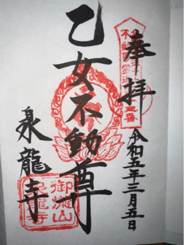 | 由来 | 泉龍寺は正慶二年(1333)に建立されたが、観応二年(1351)兵火のため灰じんに帰す。 永徳二年(1382)再度建立したもつかの間、小山下野守義政が反逆を起こした際、鎌倉管領佐兵衛督源氏満政が兵を率いて討伐にうって出た。 しかし、山野に放火した火が聖堂に引火し、それを焼失してしまう。 以来、数度におよぶ戦火に遭遇。それでも、不動明王の尊像は、厳然として戦火の中に出ていき、慈救の威相はますます輝きを増していった。 このため、火伏の不動ともいわれる。 時はくだって、慶長十一年(1606)御朱印地として寺領を賜り、さらに葵の御定紋を許され、現在に至る。 ところで、寺号の由来もなかなか興味深い。 あるとき、疫病に悩む庶民の苦しみを救うため本尊に祈ったところ、この地に清らかなる泉が湧き出てて、病がたちまちにして平癒したことから、泉龍と称するようになった、と伝えられる。 |