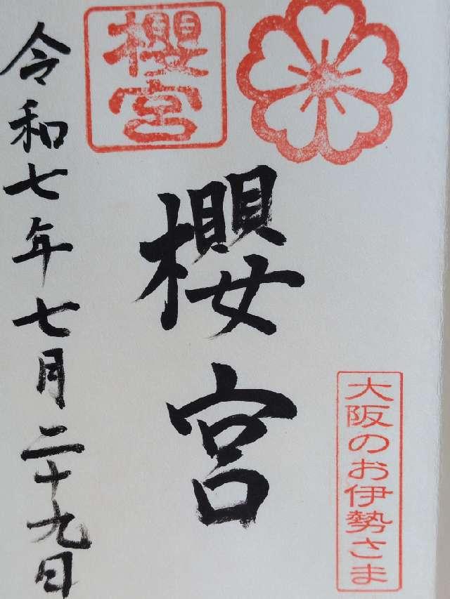 旧東生郡野田村「小橋」桜の馬場字「宮田」が創祀の地で、氏神として祀られていたが、1613年(慶長18年)造営の社殿が1620年(元和6年)大和川の洪水で流出し、中野村(現JR環状線「桜ノ宮駅」直下の地)に漂着、この地で再建し祀られることになった。しかし、この地は低地であったため、その後1666年(寛文6年)、1674年(延宝2年)に水禍に罹り、1756年(宝暦6年)現在地(中野村字厨)に遷座したという。 当社が「宮田」の地に鎮座していた時代より、大坂城守護社として、豊臣・徳川氏の尊崇を受け、しばしば祈願供御が行われたと伝わるが、度々の兵火・洪水により、神宝記録などが散逸し、創始の年代などは不詳である。現在地に移った後の天保(1830~44年)、弘化(1844~48年)年間には代々の大坂城代が参拝に訪れたことが当社の記録に残されている。 当社の名は現在地に遷座後も往時の地名(桜の馬場)をとって「桜の宮」と称していたが、のちに地名の桜が樹木の桜にとり代わり、淀川に面した境内には数100株の桜が植えられ、江戸中期には「桜の名所」として、喧伝されるようになった。 残念なことに、1885年(明治18年)の洪水で多くの桜が枯死し、旧観を失したと伝わるが、それでも春には残された老幹の花見に大勢の見物客が訪れ、付近の農家では花見客を相手に酒肴を売るものもおり、境内の料亭では夏の荷葉(はす)飯が名物で、大いに賑わったという。 昭和初期までは、上記のような情景が見られたが、爾来都市の発展に伴い、付近にも工場が林立し、煤煙による影響で、樹は育たなくなり、加えて1940年(昭和20年)6月には戦災に遭い、昔日の面影は失ってしまった。 近年、この付近は風致地区に指定され、神社の西側、淀川に面した「桜ノ宮公園」には、桜樹が移植され、昔の名所がよみがえり、桜のシーズンには大勢の人で賑わっている。 |