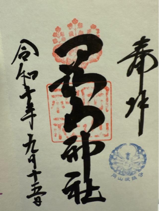 御祭神 | [主祭神]倭迹迹日百襲姫命(やまとととびももそひめのみこと) [副祭神]吉備津彦命(きびつひこのみこと) 日本武尊(やまとたけるのみこと) 大山咋命(おおやまくいのみこと) 倉稻魂命(うかのみたまのみこと) 武安霊命(たけやすびのみこと) 妹姫命(いもひめのみこと) |