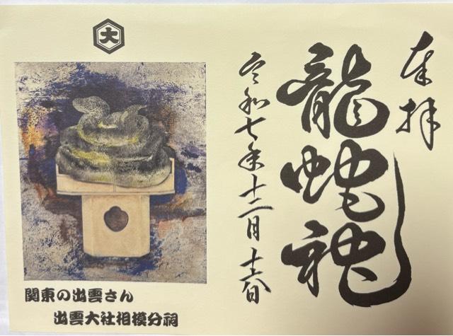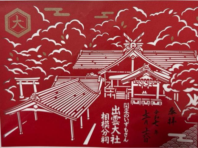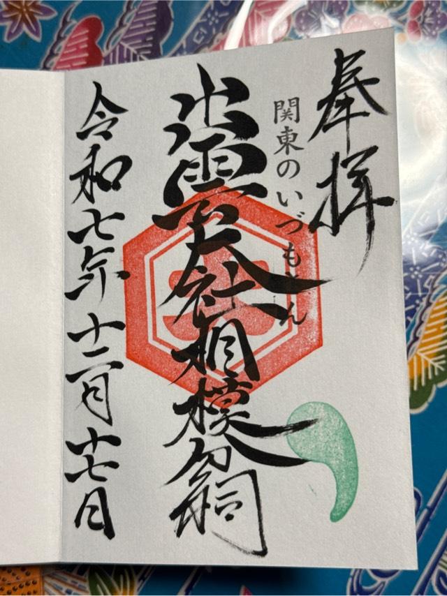 | 由来 | 「出雲大社」第80代国造である千家尊福公の要請により、当地累代神職の草山貞胤翁が出雲の大神の御分霊を明治21年(西暦1888年)に鎮祭申し、大国主大神の御神徳を関東地方に広めるため創建されました。 当初は、南西に位置する渋沢峠に鎮座していましたが、昭和50年(西暦1975年)に現社地に遷座しました。 |