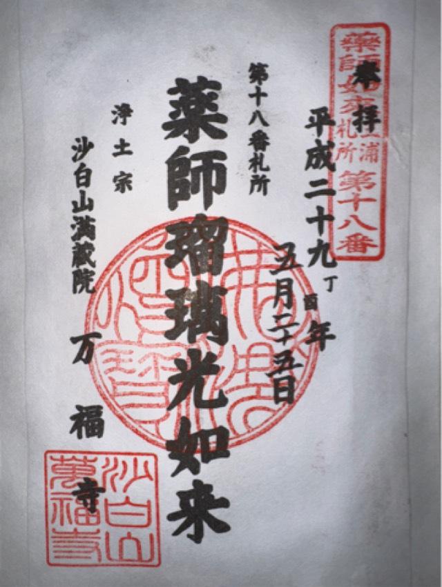 この寺は、もと下山口平の里にあった満蔵院で、下山口を領していた鎌介という人が満蔵院本尊の薬師瑠璃光如来の信仰者であったので、明応四年に現在の地に自分の邸宅を全部寄進して寺となし、平の里から薬師如来を移して祀り「沙白山満蔵院万福寺」と号した。そして、鎌倉の光明寺から浄土宗四代の法孫寂恵上人の法弟、源誓上人を招請して開山と仰いだ。 |