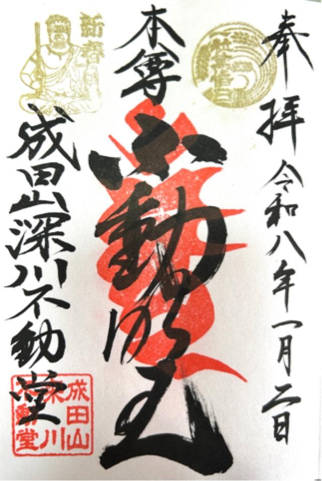 | 例祭日 | 1月1日:修正会元朝大護摩供 成人の日:成人祝祷会 1月28日:初不動 2月3日:星まつり祈祷会 2月15日:開運出世稲荷例大祭 3月中日:彼岸大法会 4月1日:慈恩如来遷座法要 4月上旬:花まつり灌仏会 4月5月:大般若経転読会 5月1日:深川龍神例大祭 7月15日:盂蘭盆会萬燈供養 8月15日:盂蘭盆会萬燈供養 9月15日:開運出世稲荷 開創記念大祭 9月15日:貫首巡錫特別大護摩供 9月中日:彼岸大法会 10月15日:大般若経転読会 11月1日より:七五三祝祷会 11月15日:大般若経転読会 12月28日:納め不動 |