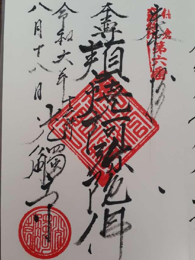 | 神社・お寺情報 | 岩蔵山長春院光触寺 鎌倉三十三観音・第7番札所 鎌倉二十四地蔵・第5番札所(塩嘗地蔵尊) 鎌倉六阿弥陀・第6番札所 本尊は阿弥陀三尊で、阿弥陀は運慶、観音は安阿弥(快慶)、勢至は湛慶作と伝えられ、鎌倉六阿弥陀の一つに数えられる(国重文)。 本尊中尊の阿弥陀如来像は「頬焼阿弥陀」と呼ばれ、絵巻物の『頬焼阿弥陀縁起』は国の重要文化財。 境内(本堂前)に置かれた「塩嘗地蔵」には、塩売りが塩を供えると嘗めたという伝説が残されている。 |