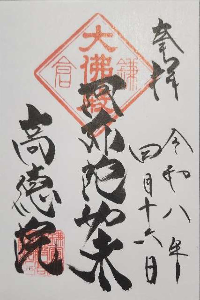 | 神社・お寺情報 | ●札所 鎌倉三十三観音・第23番 鎌倉六阿弥陀・第1番 ● 文化財(寺宝) ・阿弥陀如来坐像(国宝) ・鎌倉大仏殿跡(国の史跡) ・観月堂 ・与謝野晶子歌碑 ●駐車場について 障害者用駐車場のみ1台分の用意があり、事前予約制でご利用いただけます。それ以外の方は近隣の一般駐車場をご利用の上、お問い合わせは直接駐車場へお願いいたします。 ●開門 4月〜9月:午前8時〜午後5時30分 10月〜3月:午前8時〜午後5時 ご入場は閉門15分前まで ●大仏胎内拝観 午前8時〜午後4時30分(通年) ご入場は終了10分前まで ●直営売店(札所) 午前8時30分〜午後4時45分(通年) ●朱印受付(寺務所) 朱印帳記帳 午前9時〜午後3時 印刷紙朱印 午前8時〜午後4時30分 いずれも通年 拝観料 一般:300 円 中・高校生小学生:150 円 大仏胎内の拝観料:50円 |