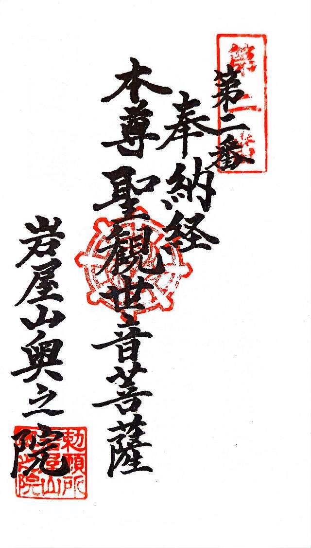 岩屋寺にて、直書きで頂いた御朱印
