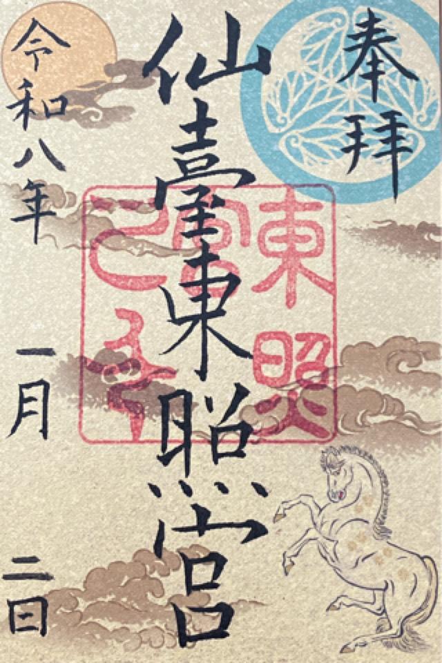 | 由来 | 2代藩主伊達忠宗公は、東照大権現を伊達家の守護神としてお祀りするため、慶安2年(1649)5月に東照宮造営を3代将軍徳川家光公に願い出て許しを得同年8月普請始を行い、本殿、唐門、透塀、幣拝殿、本地堂、御供所、御厩、鐘楼、随身門、石鳥居、別当寺仙岳院、御旅宮等が完成したのは、着工以来5年後の承応3年(1654)3月である。社地玉手崎の丘は天正19年徳川家康公が葛西大崎一揆の視察を終えて帰途のおり、当時天神社の境内であったこの地で、藩祖伊達政宗公と休息された故事により社地に選ばれたという。造営に携った総人数は834,835人、総工費小判22,443両を要した。仙台藩総力をあげての大事業であり、伊達文化の粋を結集したものである。以後伊達家の守護神として歴代藩主に崇敬され、旧時は9月17日を祭礼日とし藩主在国の年には城下の町々に命じて神輿渡御の先駆として山車をくりだした領内最大の祭りで、これを仙台祭りと称し、江戸時代末期まで盛大に行われた。明治維新後、藩の保護を離れたため境内は一時荒廃したが、氏子の尽力により整備され明治12年郷社に列し、祭典日も4月17日に改められ、大正14年には県社に昇格した。昭和10年8月不慮の火災により幣拝殿、神饌所が焼失したが、昭和39年原形に復興される。昭和28年3月、本殿、唐門、透塀、石鳥居が国の重要文化財に指定される。(随身門は昭和55年3月追加指定)。昭和52年3月には唐門、透塀の大修理が、54年には本殿の修理工事が行われ、創建当初の荘厳華麗な姿に修復された。平成3年秋には御大典記念事業として、表参道整備工事、車道舗装工事を実施。平成15年には御遷座350年奉祝記念事業として行なわれた参集殿、社務所改築工事が竣功し、境内は尊厳と安らぎのある神域として整備された。 |
