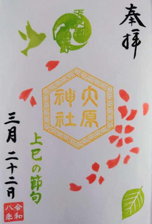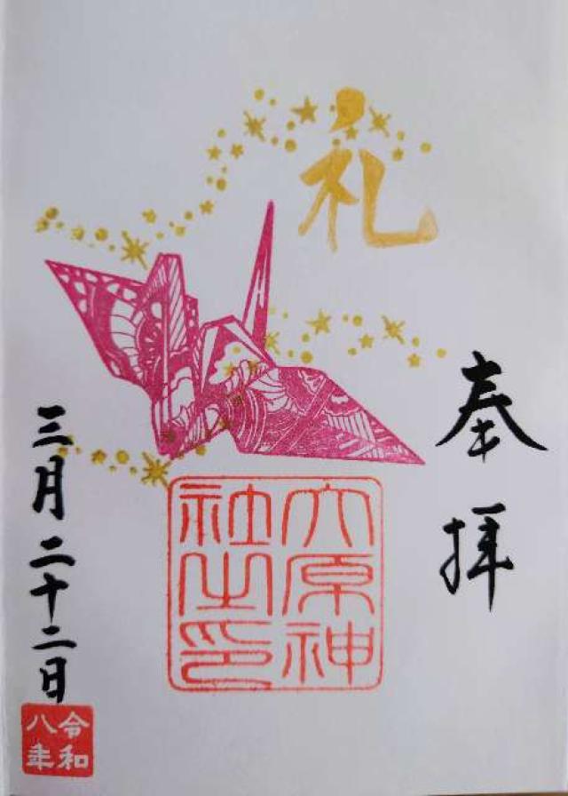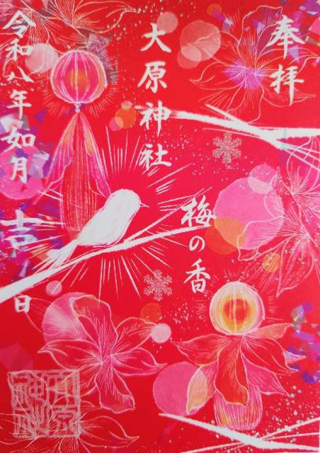 隣接社有地に祖霊殿を建立し、全氏子の大祖先、戦没英霊、130余柱の神葬霊魂を鎮め祀る。 ・千葉県指定無形民俗文化財「下総三山の七年祭り」では、叔母役を担う。 ・先代の宮司様が、本郷にあった大宮神社(伊耶那岐命)と一緒になったのだから、そこをアピールポイントとして男女二柱で縁結びの神「大宮大原神社」とし、それを今の時代に幅広く解釈していただけるように、“ご” をつけて、ご縁結びの神社とした。故に、通称は「大宮大原神社」。 しかし、正式名称、所謂“神社庁への登記”は「大原神社」となる。 |